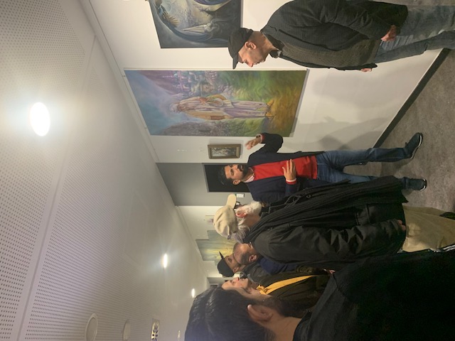 Gemälde von Ravo Ossman gegen den Völkermord an den JesidInnen wurde vom 04.04.2024 - 28.04.2024 in der VHS Hannover, Burgstraße 14, präsentiert. Er jährt sich am 3.08.2024 zum zehnten Mal. die Bilder sind ein Statement gegen das Schweigen und Vergessen, denn immer noch sind mehr als 3000 jesidische Frauen in Gefangenschaft oder werden vermißt. Hier seht ihr vorne rechts im Bild den Künstler und links neben dem Gemälde den Aktivisten und TV Moderator Yilmaz Peskevin Kaba. Er erläuterte gemeinsam mit dem Künstler die Symbolik der Gemälde. (siehe Bildergalerie unter "mehr")